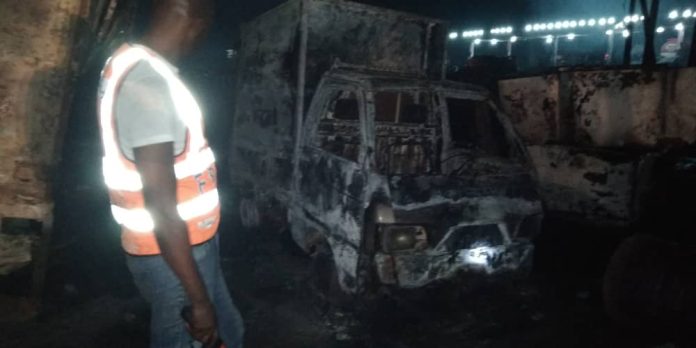 From the crash investigation report submitted, a total of 2 male adults were killed and burnt beyond recognition, while a wanton destruction of properties occasioned by the fire also left 29 vehicles parked by the road side burnt down completely.